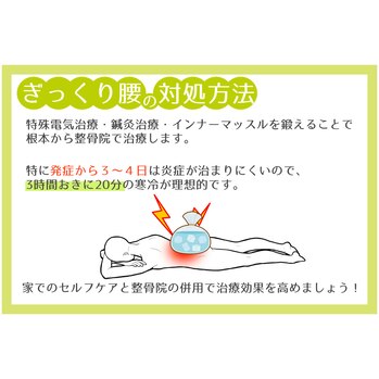 ぎっくり腰を起こした場合、まずは【患部の寒冷】が1番です。