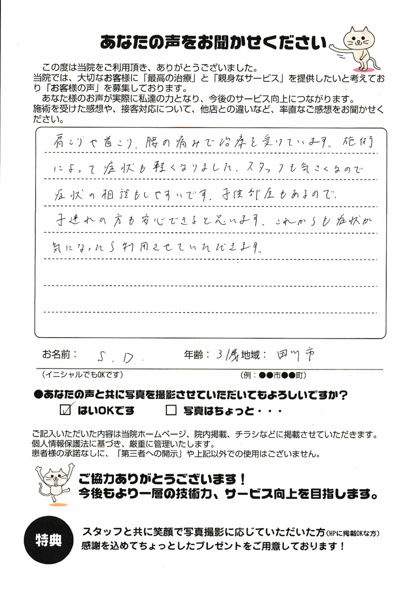 施術中も子供好きのスタッフが側についておりまのでお子様連れの方も安心して施術を受けていただけます!
